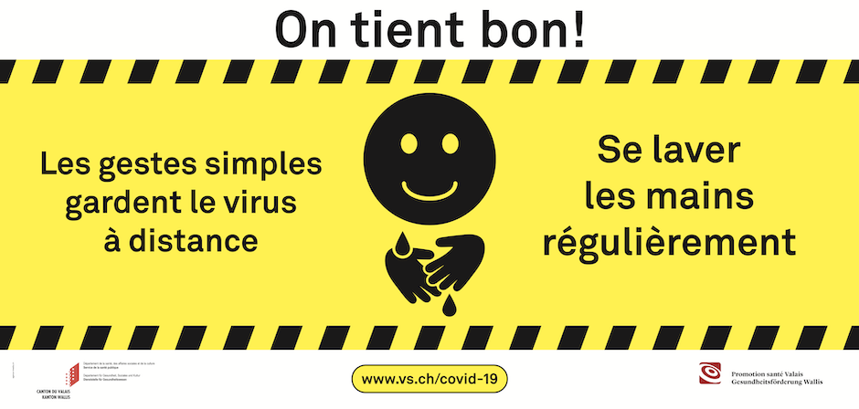 La campagne orchestrée par l’État du Valais et Promotion Santé Valais sert à rappeler les gestes-barrières à la population valaisanne.