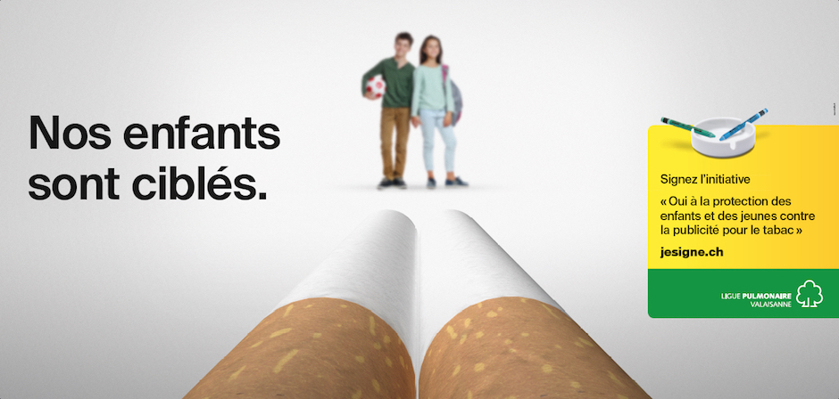 Une initiative est lancée afin de pouvoir voter une loi donnant l’interdiction à l’industrie du tabac de s’adresser aux enfants. La première étape est la récolte de signatures. 100’000 paraphes sont nécessaires.