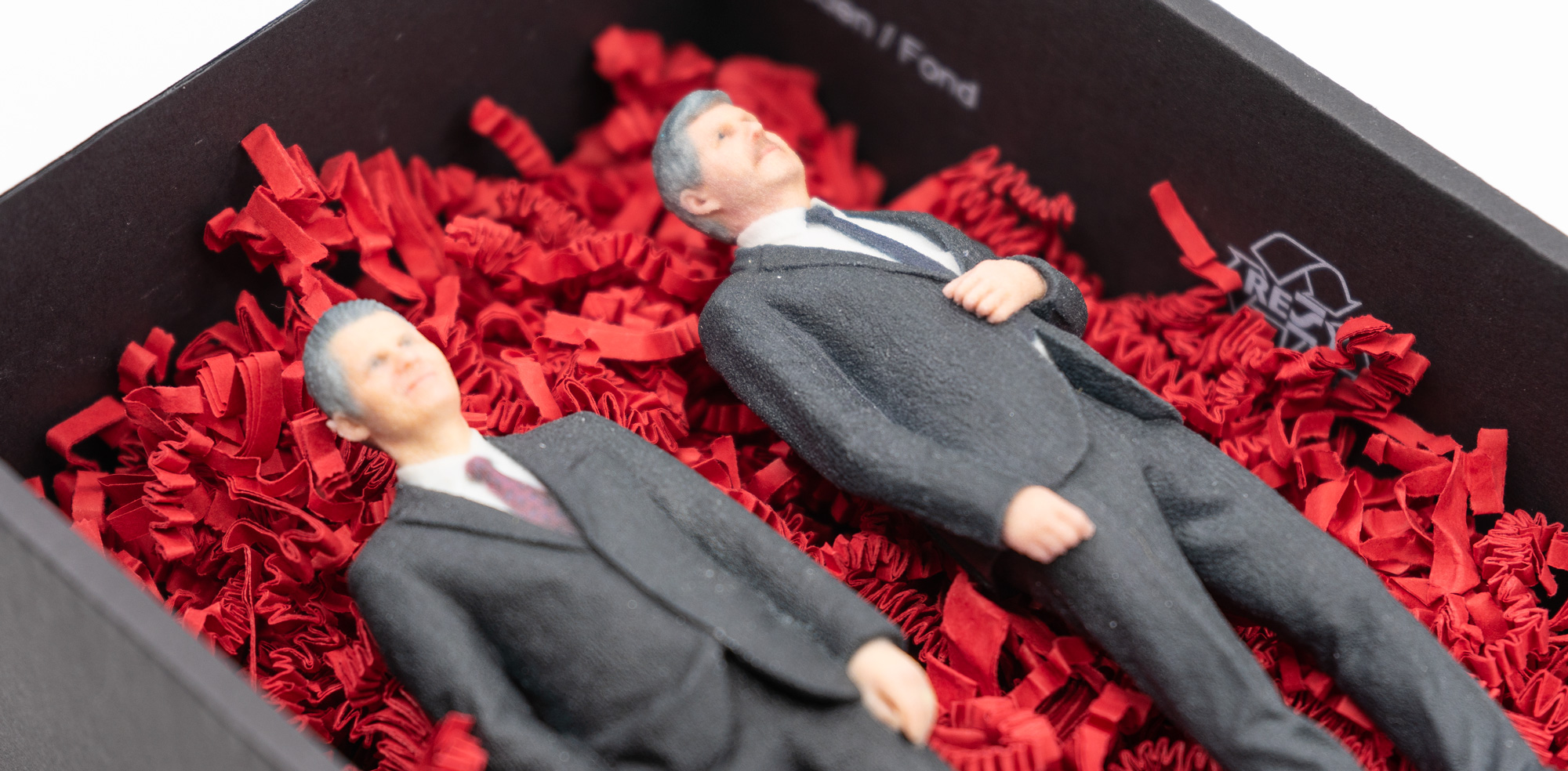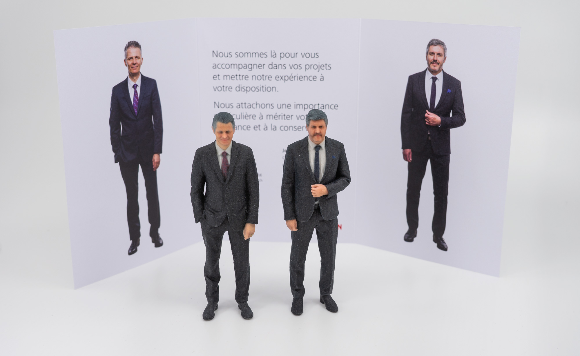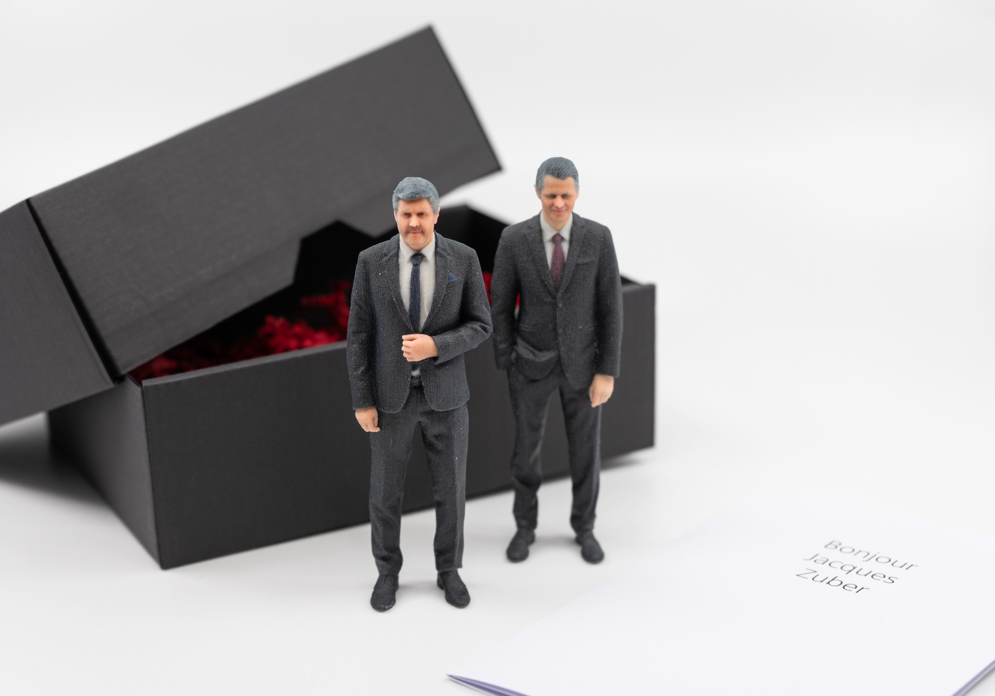 Un colis personnalisé est remis aux chef-fes d’entreprise contenant 2 figurines à l’effigie des conseillers ainsi qu’un dépliant permettant de prendre contact avec les spécialistes.
